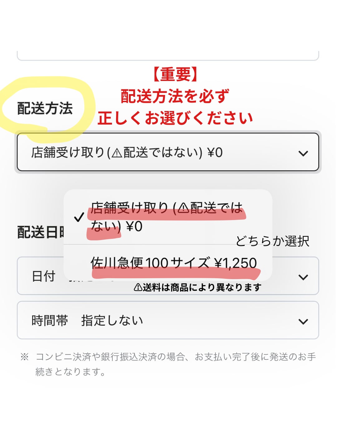 (選択を誤られた場合、ご希望日時にお届けできない可能性がございます。)