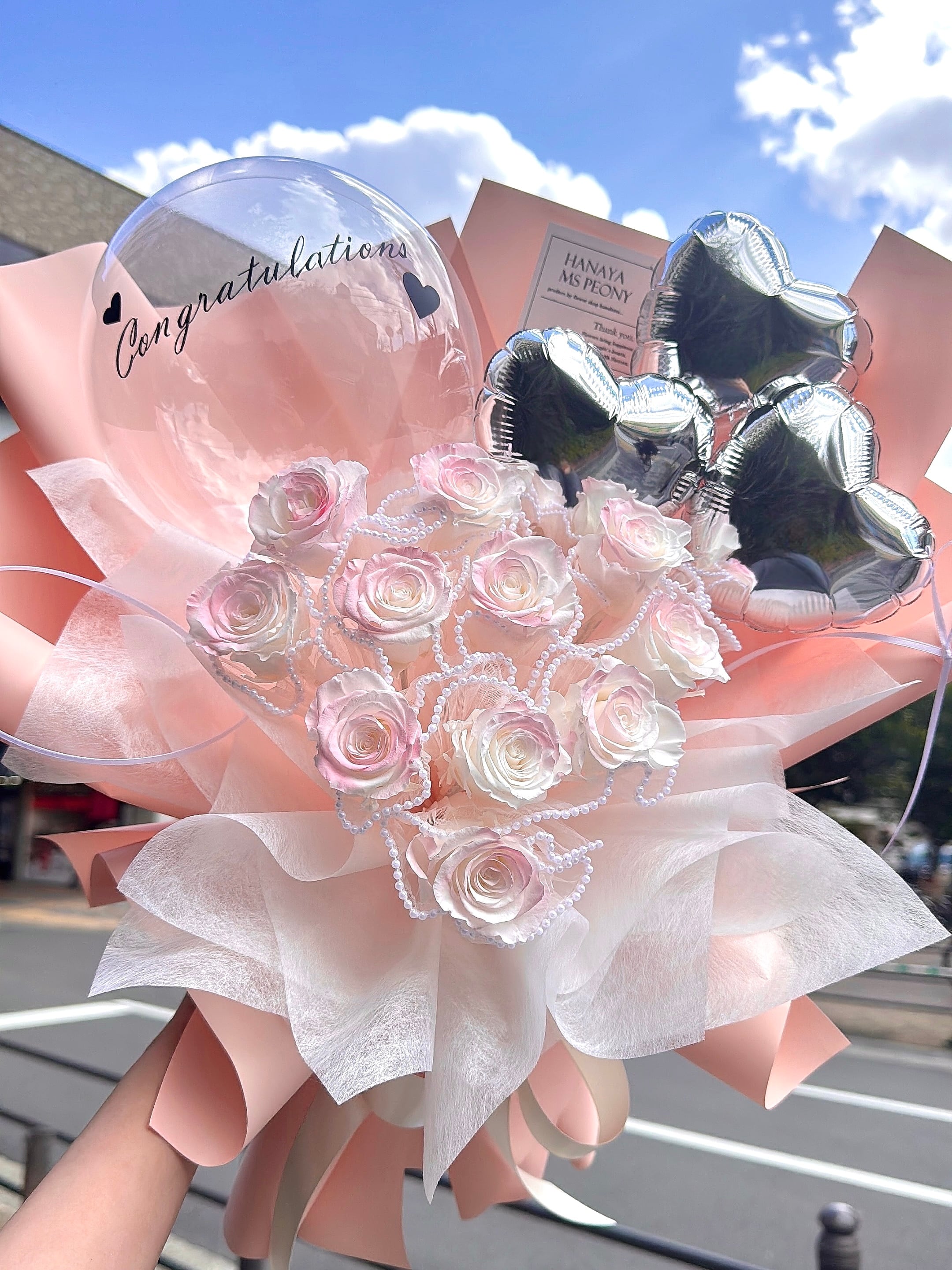 メッセージバルーンとシルバーハートバルーンを入れて♡