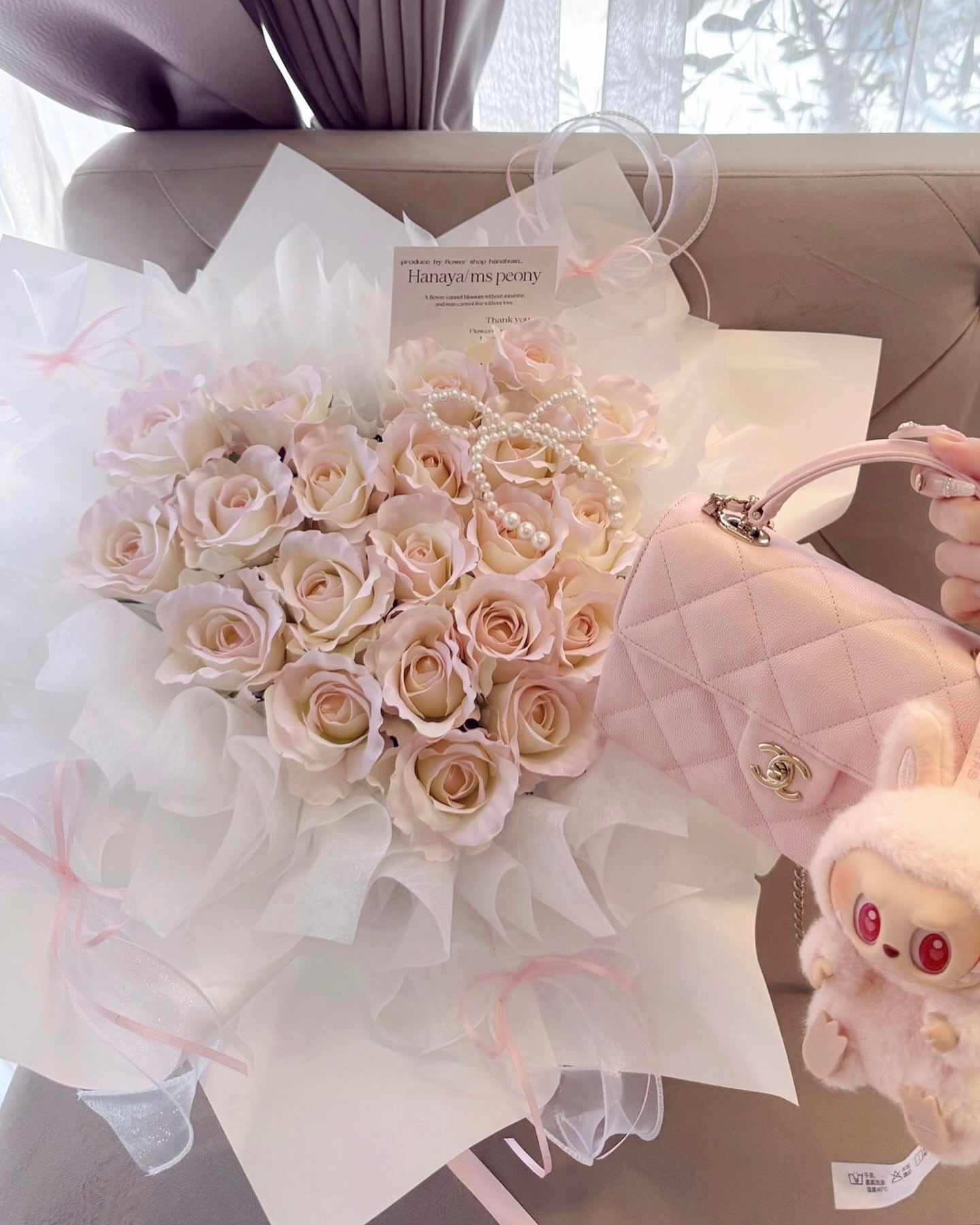 バラをハートの形にし上品なパールやふわふわの装飾が華やかさを添え、写真映えも抜群です♡