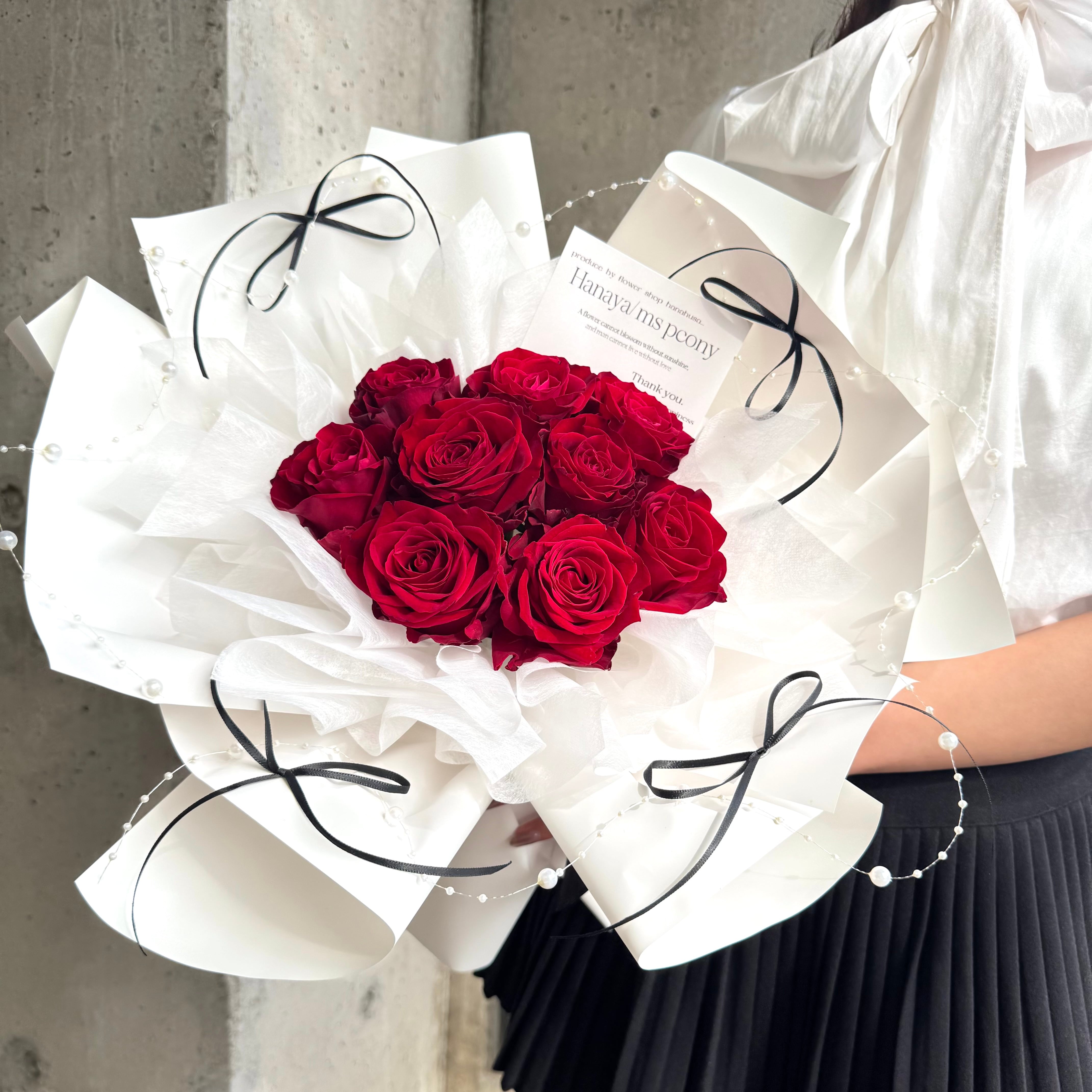 ※赤バラは仕入れ時から、花びらが一部暗くなってるものもございます。