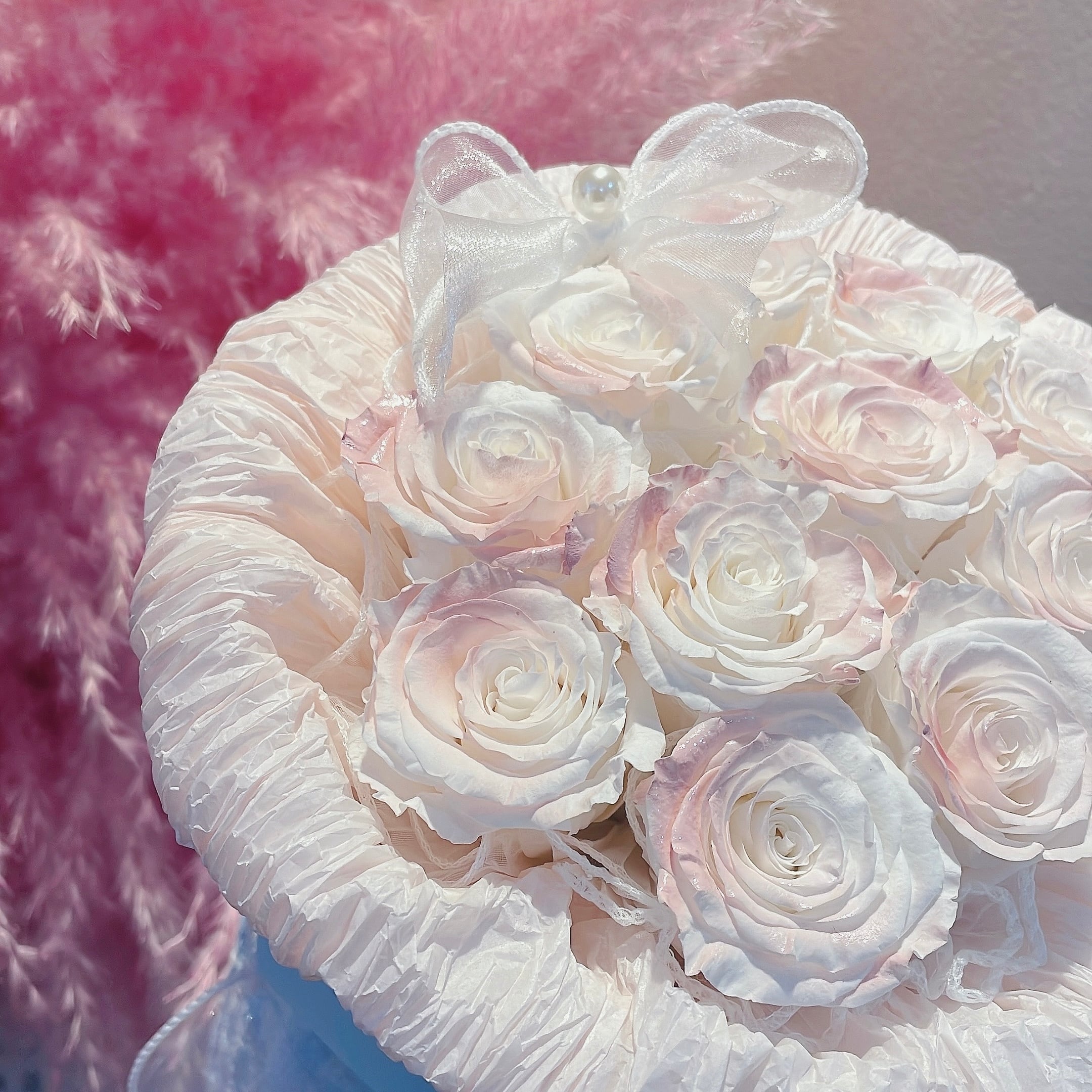 ※お水をあげないでください。また湿気に弱く、湿度の高い場所に置くと花びらが透けたようになりますのでご注意ください。