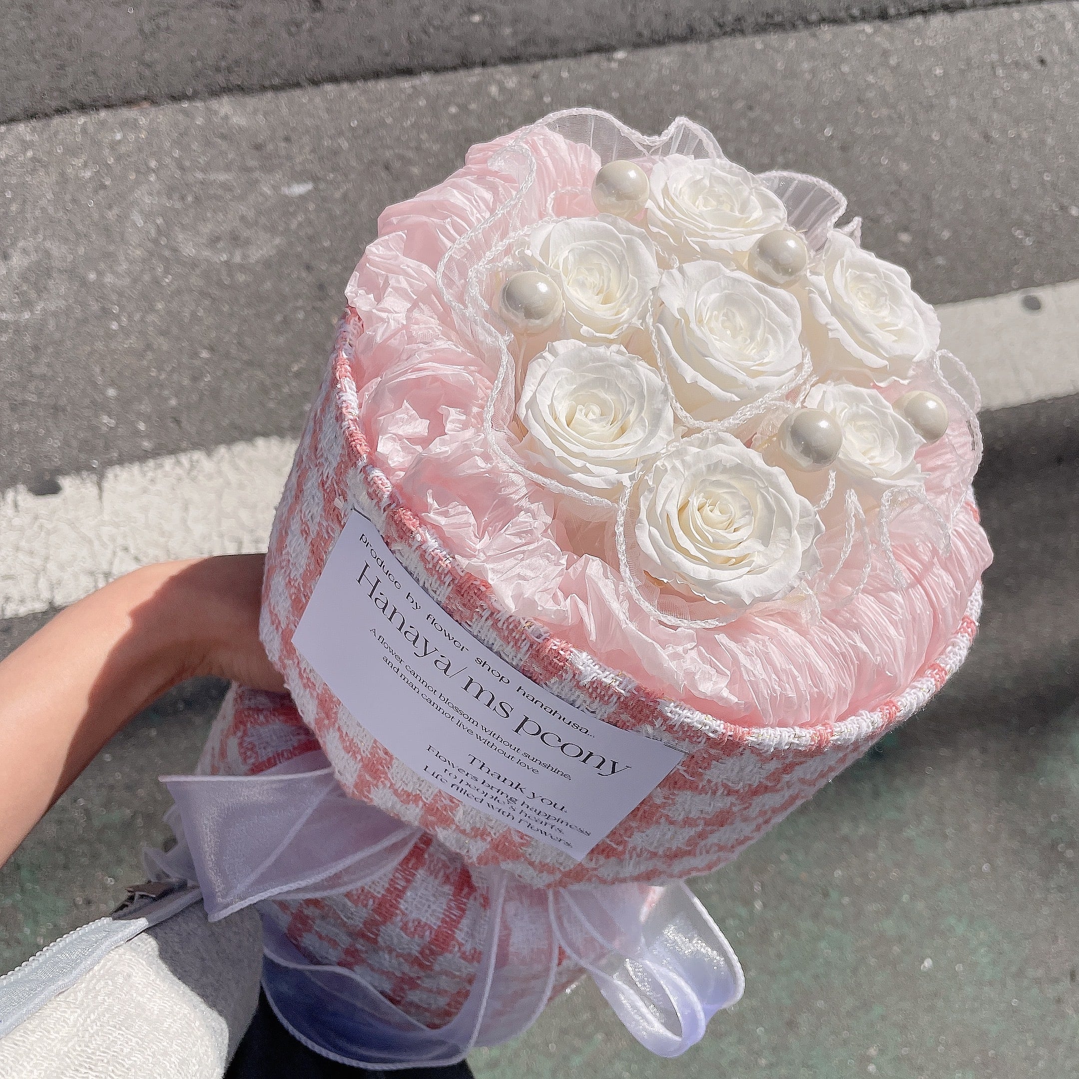 Preserved flower stand tweed wang hong bouquet